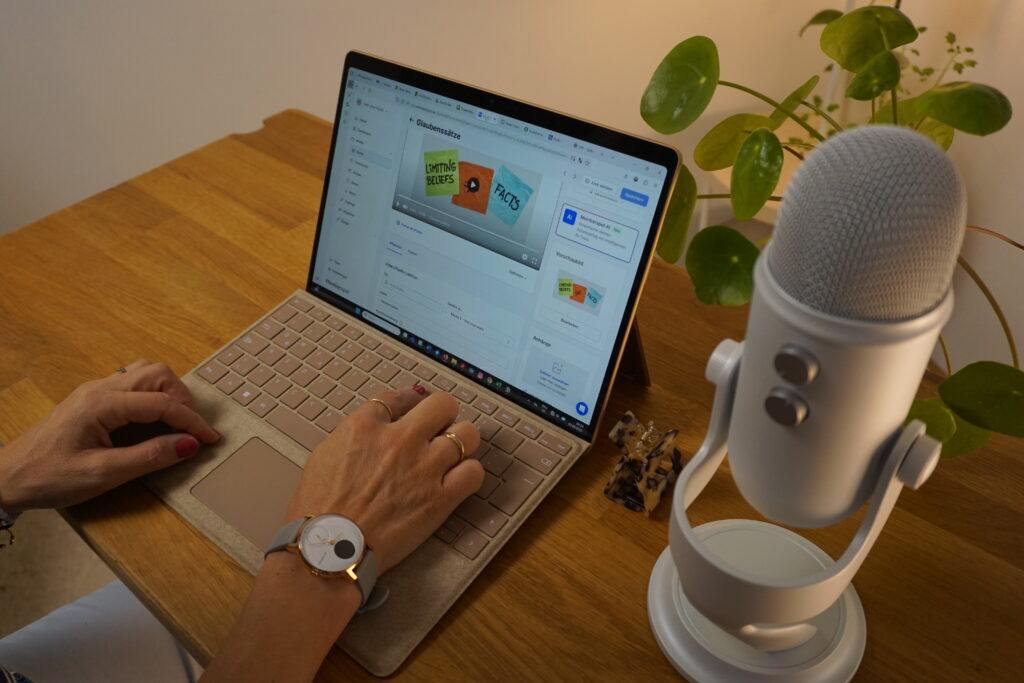 Jedes Modul beginnt mit einem gemeinsamen Live-Workshop via Zoom, in dem du fundierte Inhalte und praxisnahe Übungen kennenlernst. Diese vertiefst du mit Workbooks, Audios und kleinen Alltagsaufgaben, bis wir uns in der nächsten Live-Session wiedersehen.
